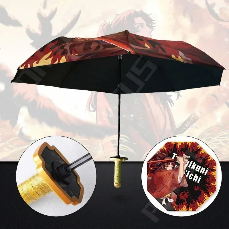 Protege tu estilo y tu cuerpo de la lluvia o del sol con este paraguas inspirado en tus personajes favoritos de Kimetsu no Yaiba. Diseñado como una katana plegable, combina funcionalidad y estética para fans del anime y cosplay.