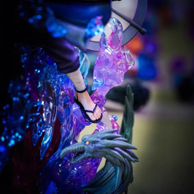 Cada detalle está cuidadosamente esculpido en PVC de alta calidad, desde su armadura hasta su manto flotante, logrando que parezca que Madara acaba de descender al campo de batalla listo para desatar su Sharingan y controlar el destino del mundo shinobi. ⚔️🔥 Las luces LED iluminan su mirada y su postura, creando un efecto épico que hará que cualquier vitrina o escritorio se transforme en un verdadero escenario del anime.