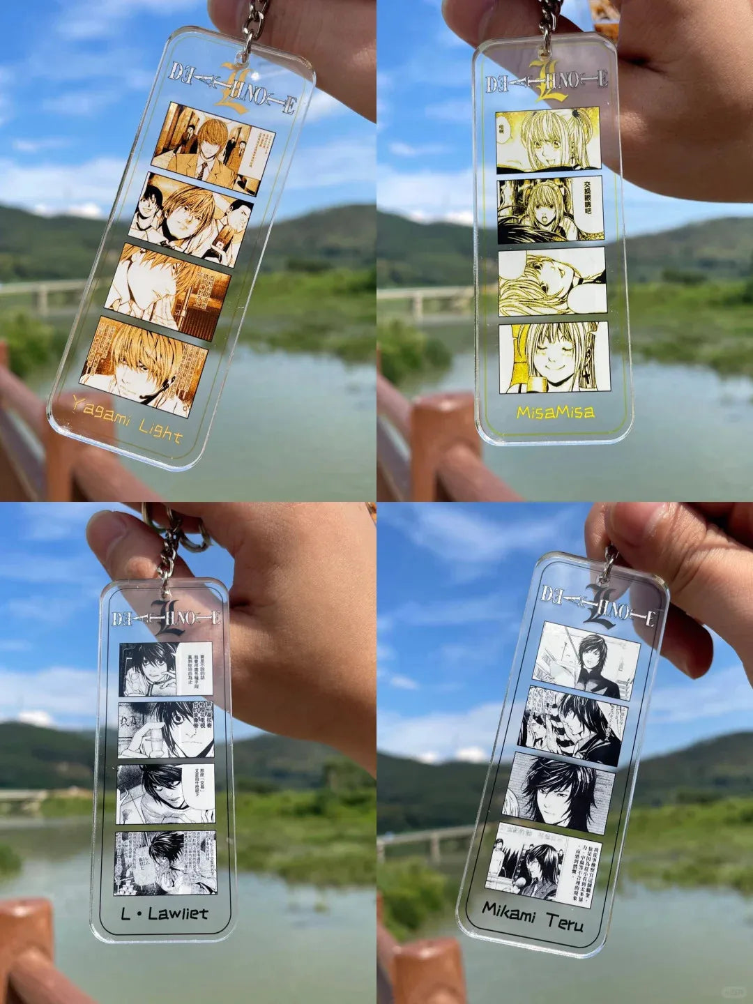 Este llavero de estilo trendy y anime, basado en los personajes de Death Note, combina materiales como PVC, metal, cristal y acrílico, con un acabado de metal bañado en rodio para un brillo duradero. Viene con un botón tipo cuerda, es compatible con todo tipo de llaves y accesorios, y está diseñado con un patrón divertido y colorido que se muestra en la imagen, ideal para amantes de la música o fans de diseños kawaii. Es un accesorio versátil, perfecto como regalo para amigos, familiares o compañeros, y adecuado para uso diario, coleccionismo o decoración de bolsos y maletas.